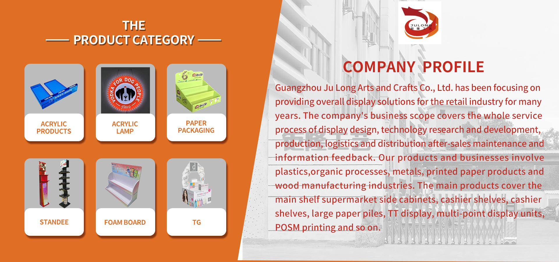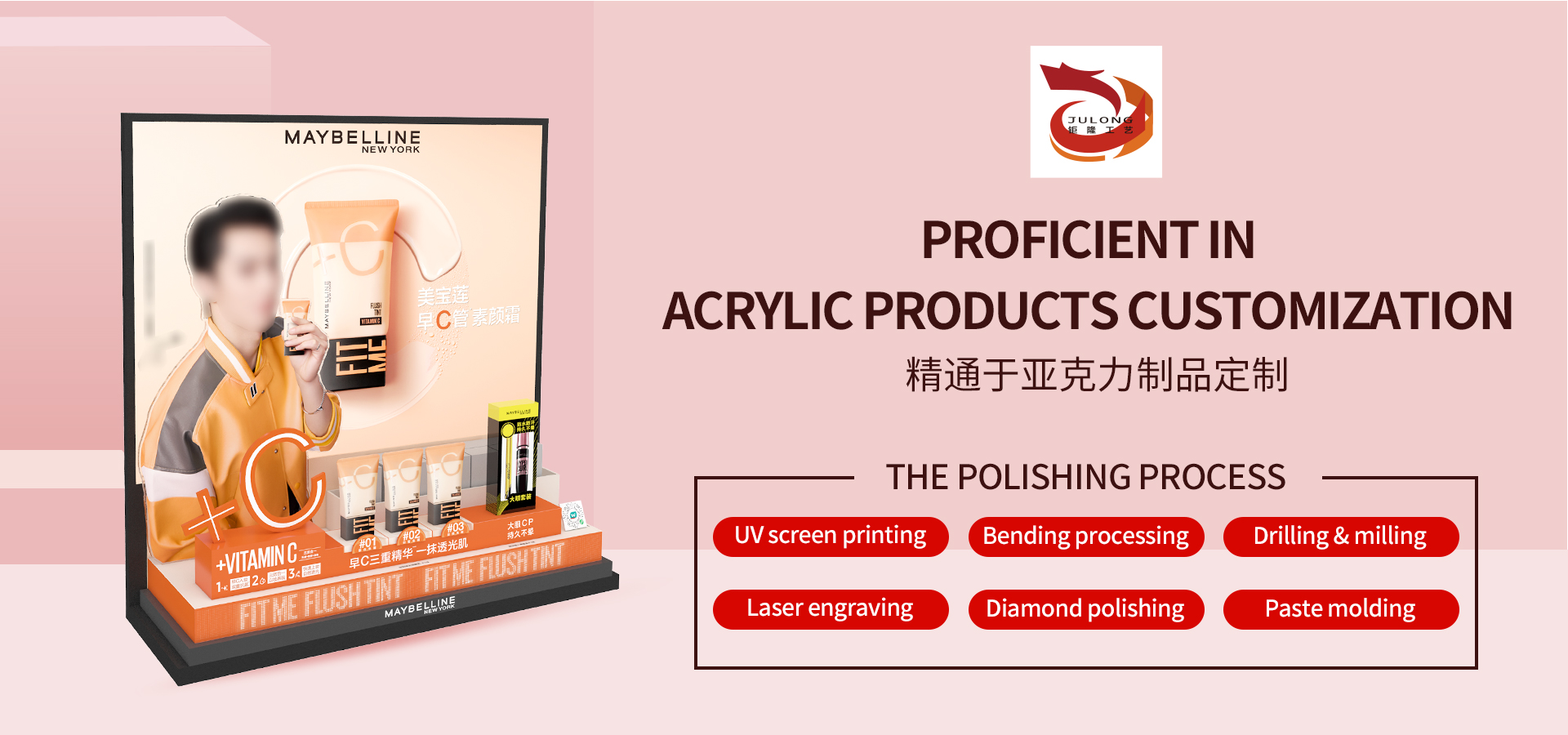 The company mainly produces acrylic products, acrylic display racks, hotel supplies, pressure storage boxes, supermarket acrylic display racks, makeup display racks, signs, lightboxes, desk labels, acrylic covers, information boxes, and other acrylic products.